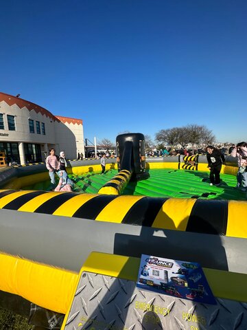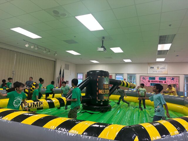 This Toxic Meltdown Eliminator Wipeout Rental does great for corporate events, church events, school fundraisers, large parties, block parties, or event you may be hosting! Each person tries their best to avoid getting hit by the spinning arm and stay on the pedestal! Click the video to see the Toxic Meltdown in Action. So Duck or Jump, just don't get hit by this spinning Boom Arm! The Meltdown Inflatable is great for churches event, school events, corporate events, backyard parties, festivals, and even block parties! The Portable Rock Climbing Wall is also a great extreme attraction add-on to the meltdown. It will keep your event moving with lots of extreme fun!