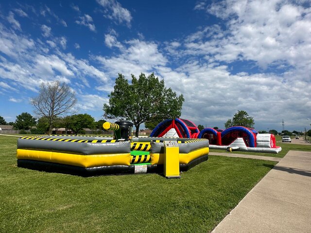 This Toxic Meltdown Eliminator Wipeout Rental does great for corporate events, church events, school fundraisers, large parties, block parties, or event you may be hosting! Each person tries their best to avoid getting hit by the spinning arm and stay on the pedestal! Click the video to see the Toxic Meltdown in Action. So Duck or Jump, just don't get hit by this spinning Boom Arm! The Meltdown Inflatable is great for churches event, school events, corporate events, backyard parties, festivals, and even block parties! The Portable Rock Climbing Wall is also a great extreme attraction add-on to the meltdown. It will keep your event moving with lots of extreme fun!